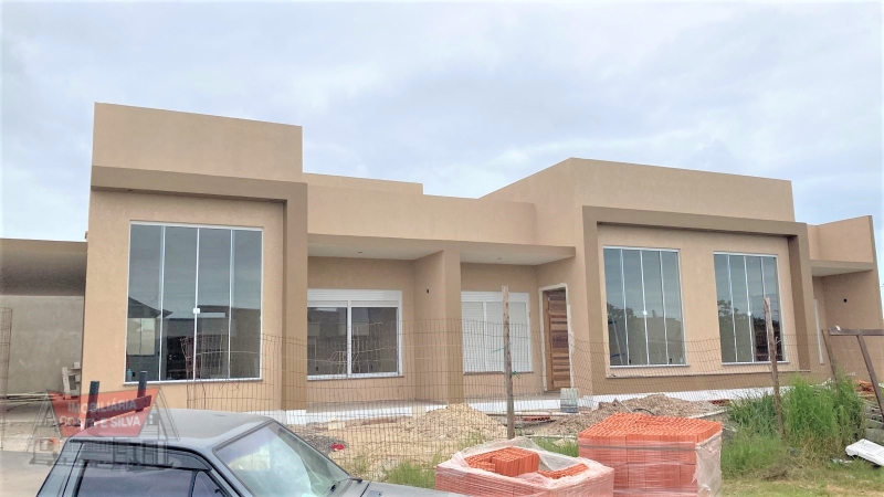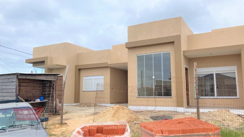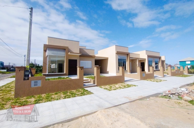 Casa geminada de esquina, 2 dormitórios (sendo 1 suíte), 1 banheiro social, sala e cozinha. Laje de concreto. Pátio com churrasqueira. Abrigo p/ 1 carro.