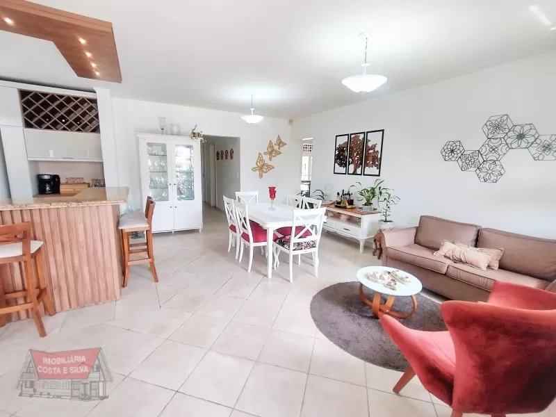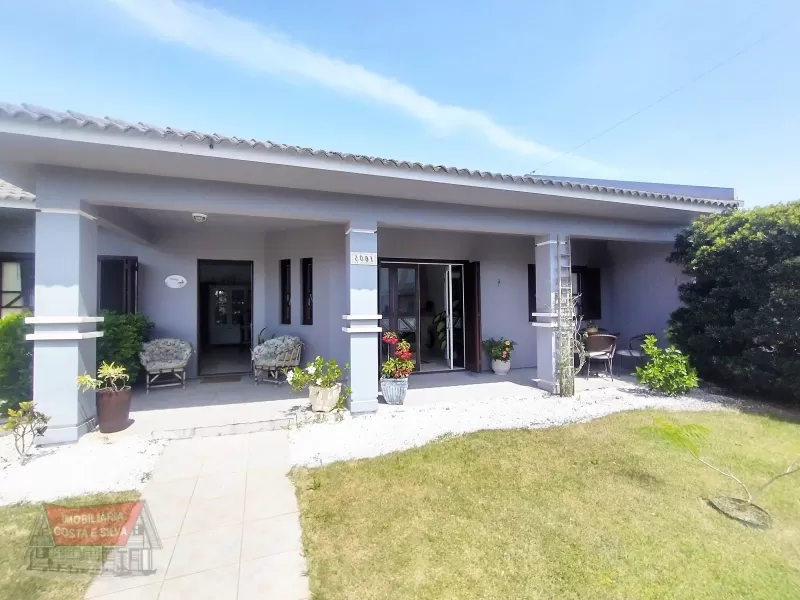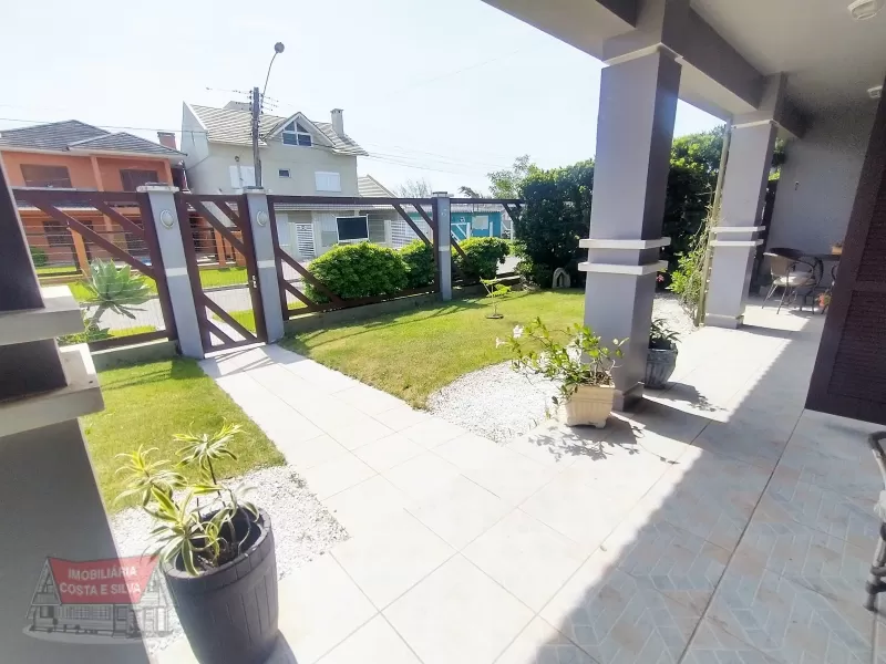 Excelente casa térrea com dois terrenos localizada próxima ao mar e no centro de Imbé, 4 dormitórios (2 suítes) living amplo com lareira, forro em laje de concreto, cozinha ampla com área para churrasco, garagem fechada para dois carros, piscina, jardim com pátio fechado.