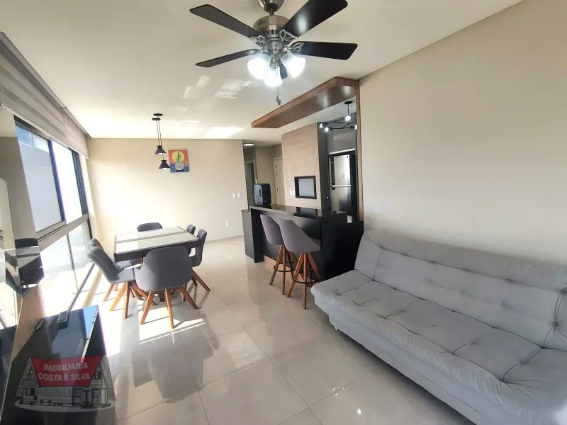 Apartamento com localização ímpar, edifício moderno, uma quadra do mar frente nascente, totalmente mobiliado e equipado, living amplo com vista para o mar e serra, cozinha integrada , churrasqueira, 2 dormitórios (1 suíte), banheiros social, box para .